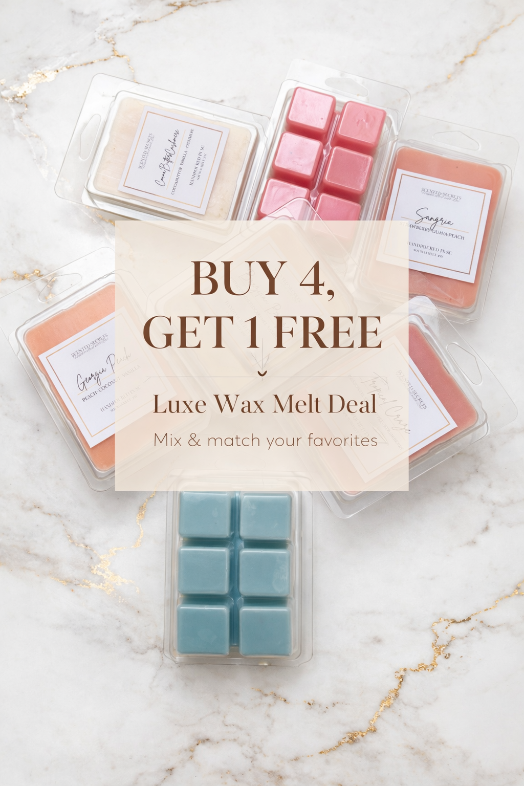 Enjoy Buy 4, Get 1 Free on all wax melts automatically applied so you can mix and match your favorite scents with ease.